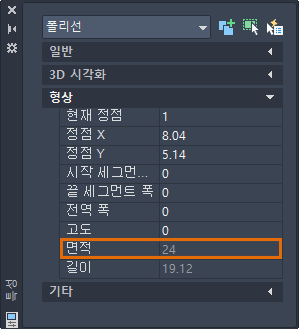 면적을 포함하여 선택한 객체의 특성이 표시됩니다.
