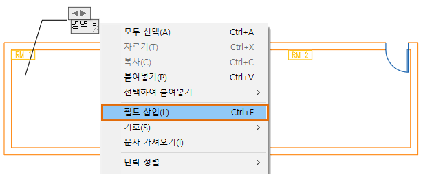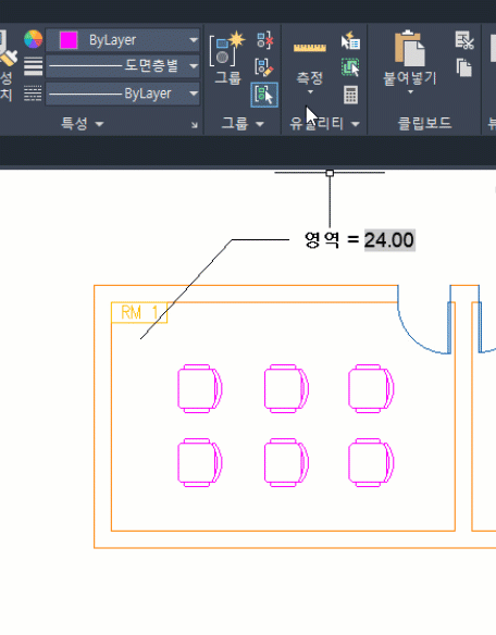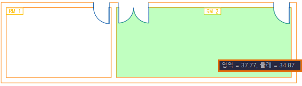 선택한 룸의 면적이 다중 지시선 객체의 문자에 표시됩니다.
