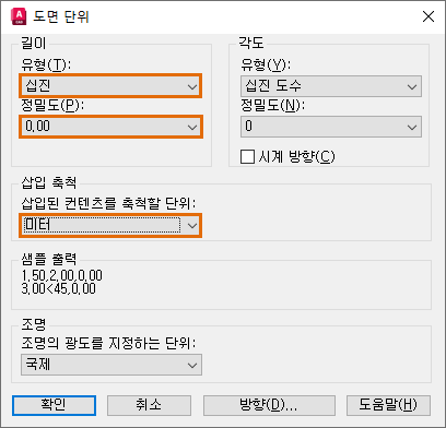 단위를 클릭하여 도면 단위를 정의합니다. 찾기