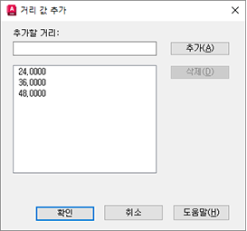 거리 값 추가 대화상자에서 24 및 48을 추가하고 확인을 클릭합니다. 36은 선형 매개변수의 길이이기 때문에 자동으로 추가됩니다.