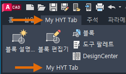 필요한 경우 CUI 편집기에서 새로 작성한 리본 패널(My HYT Panel)을 찾습니다.