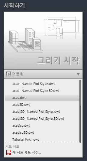 AutoCAD와 함께 설치된 템플릿이 표시됩니다.
