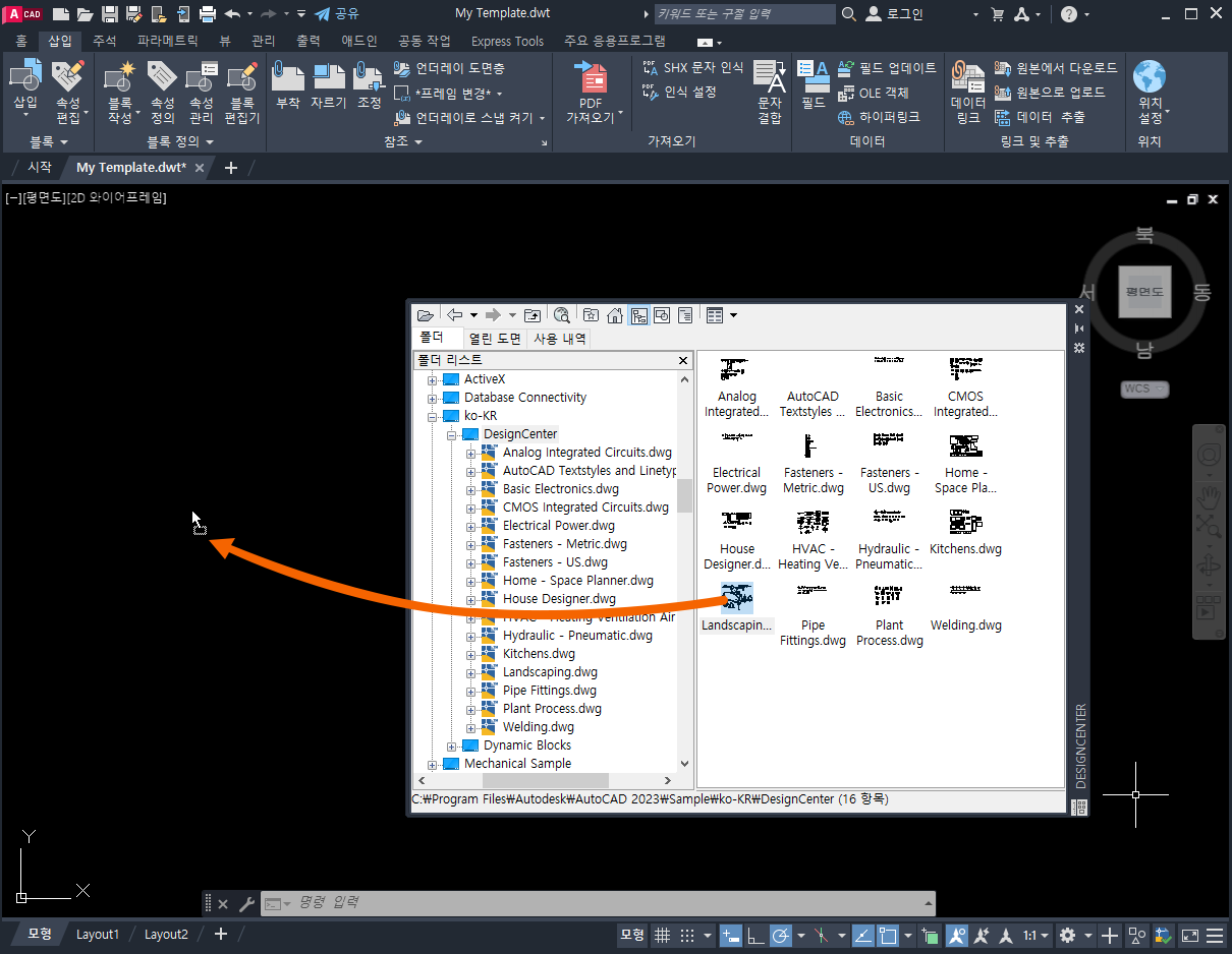 DesignCenter를 사용하여 도면층, 명명된 스타일 및 블록을 템플릿에 추가할 수 있습니다.