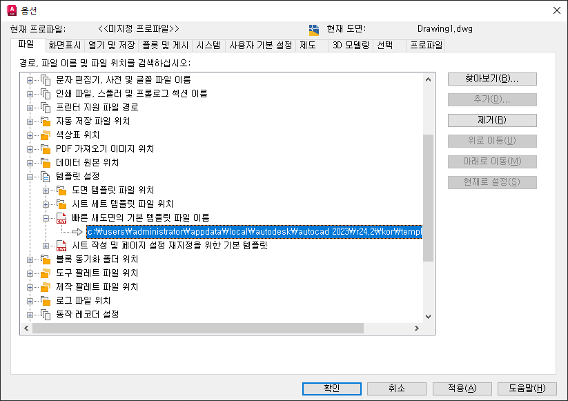 c:\Users\<사용자 이름>\AppData\Local\Autodesk\AutoCAD 2021\R24.0\enu\Template\