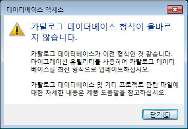 테이블을 추가하고, 레코드를 추가 및 편집하여 카탈로그 데이터베이스를 사용자화할 수 있습니다. 그러나 일부 변경 사항 때문에 카탈로그 데이터베이스를 사용하지 못할 수도 있습니다. 그러한 경우 이 경고가 표시됩니다.