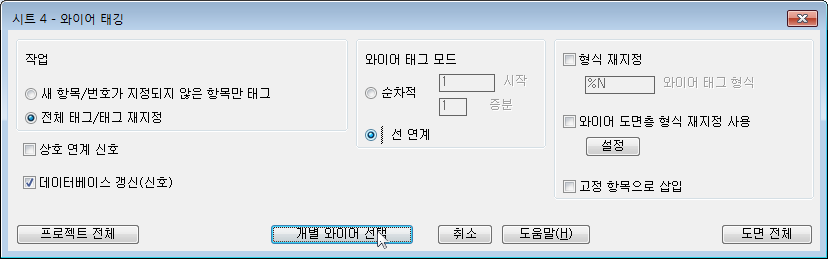 순차적인 와이어 번호나 와이어 네트워크의 선 연계 시작 위치에 기반한 와이어 번호를 사용하여 와이어를 처리하고 태깅할 수 있습니다. 와이어 번호가 도면에 자동으로 삽입될 때는 번호가 중복되지 않습니다.