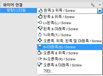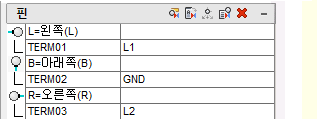 라이브러리 기호의 와이어 연결 지점 및 터미널 문자를 정의할 수 있습니다. 와이어 연결을 추가할 경우 스타일, 와이어 연결 시작 방향, 선택적 TERMxx 및 TERMDESCxx 속성을 포함할지 여부를 선택합니다. 이 연습에서는 와이어 연결 속성을 기호의 왼쪽, 아래쪽 및 오른쪽에 삽입합니다.