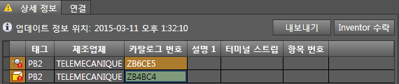 링크된 Inventor 구성요소와 일치시키려면 구성요소 값을 업데이트합니다.