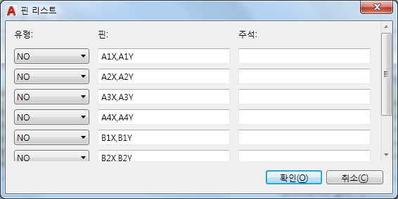 하위 기호의 핀을 정의하는 핀 리스트 대화상자를 열려면 클릭합니다.