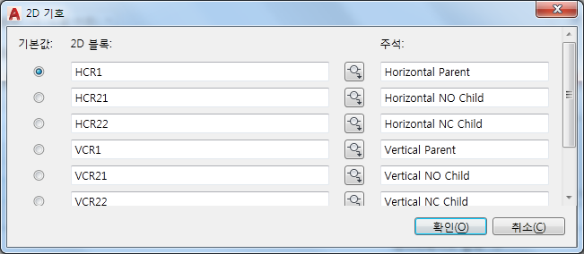 2D 기호 대화상자를 실행하려면 클릭합니다.