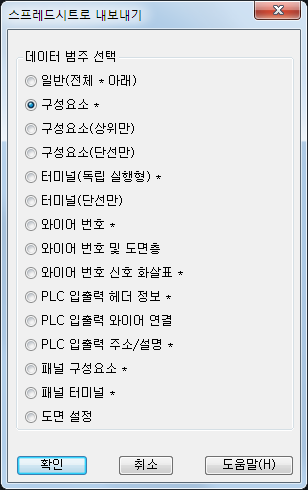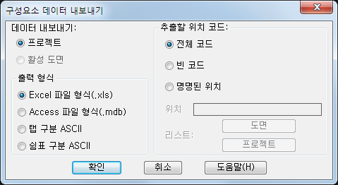 현재 도면 또는 전체 프로젝트에 대한 데이터를 내보내도록 지정합니다.