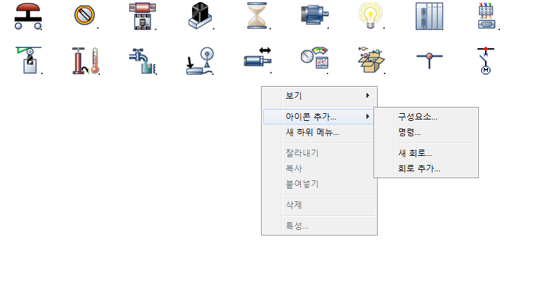 주: 빈 공간을 마우스 오른쪽 버튼으로 클릭하여 아이콘 추가 회로 추가를 선택할 수도 있습니다.