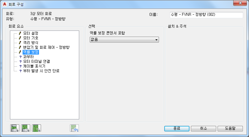선택 섹션에서 역률 보정 콘덴서 포함으로 없음을 선택합니다.