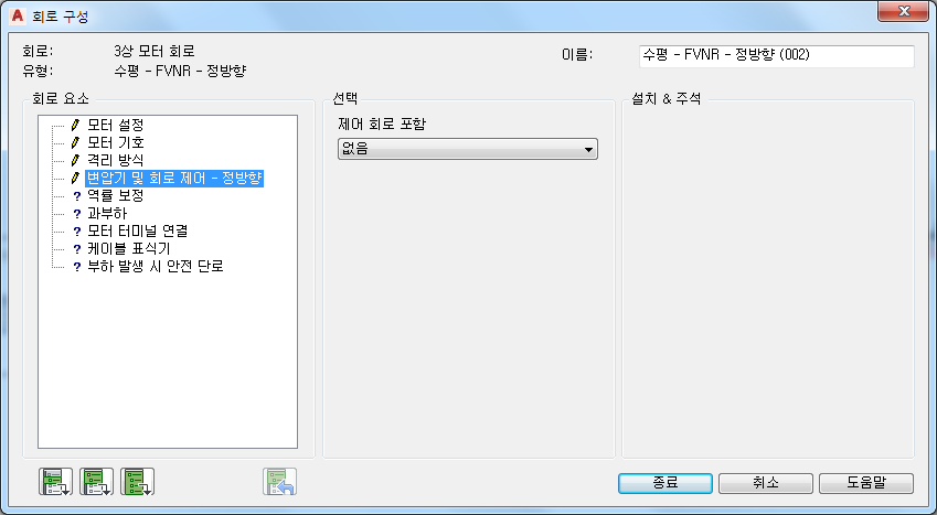 선택 섹션에서 제어 회로 포함에 대해 없음을 선택합니다.