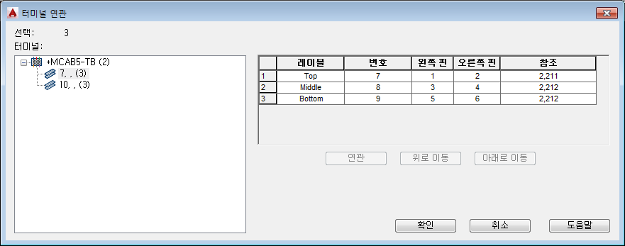 터미널 연관 대화상자에서 터미널 10, , (3)을 선택하고 연관을 클릭합니다.