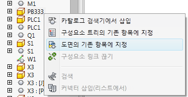 활성 도면에서 Inventor 부품과 링크할 Electrical 구성요소를 선택합니다. 링크된 구성요소를 표시하도록 구성요소 트리 뷰가 갱신됩니다.