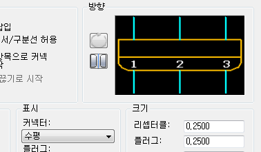 - 커넥터 화면표시 메뉴에서 수평을 클릭합니다.