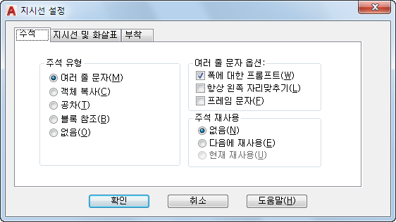 지시선 주석을 재사용하기 위한 옵션을 설정합니다.