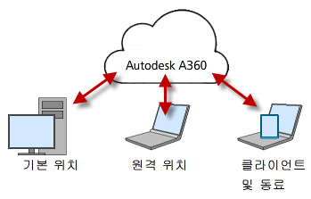 사무실과 집 또는 원격 환경에서 모두 작업하는 경우에는 랩톱이나 USB 플래시 드라이브를 사용해 설계 문서를 복사 및 전송하지 않고도 A360에서 해당 문서에 액세스할 수 있습니다.