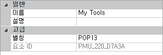 • 별칭 상자에서는 이미 로드된 풀다운 메뉴 숫자를 기준으로 새 메뉴에 별칭이 자동으로 지정됩니다. 예를 들어, 별칭 지정이 POP12인 경우 이미 11개의 풀다운 메뉴가 로드되었다는 것을 뜻합니다. 필요한 경우 별칭을 편집합니다.