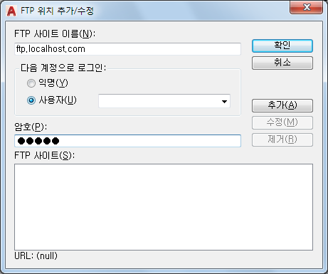 FTP 위치의 사이트 이름(예: ftp.autodesk.com)을 지정합니다.