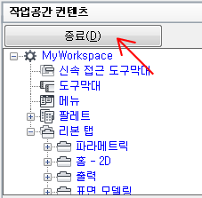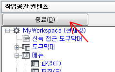 - 작업공간 컨텐츠 창에서 종료를 클릭합니다.