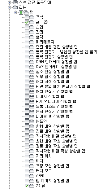 - 작업공간에 추가할 각 리본 탭 옆의 확인란을 클릭합니다.