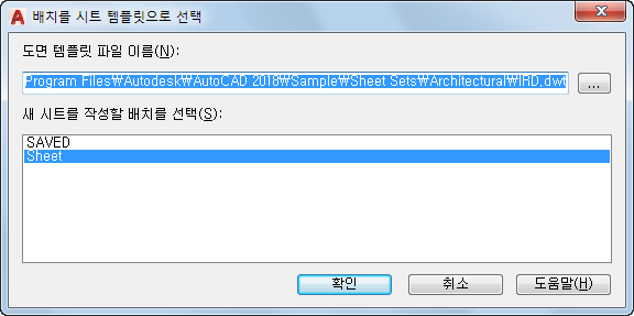 새 시트에 사용할 도면 템플릿 파일의 배치 이름을 나열하고 지정합니다.