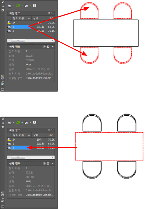 외부 참조가 도면에 부착될 때 외부 참조 아이콘이 상태막대에 표시됩니다.