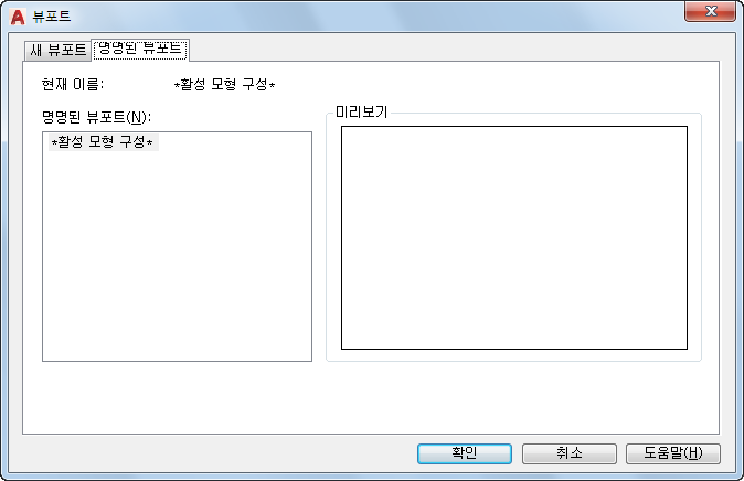 모형 공간 뷰포트 탭: 새 뷰포트—모형 공간, 명명된 뷰포트—모형 공간