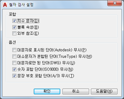 도면에서 확인할 특정 문자 옵션을 지정합니다.