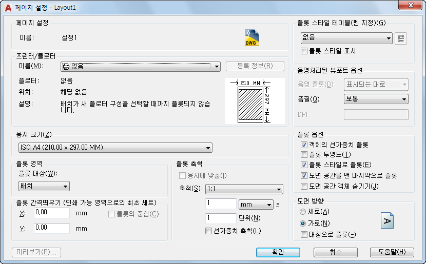 주: 또한 플롯 방향은 PLOTROTMODE 시스템 변수의 영향을 받습니다.