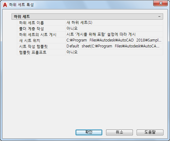 하위 세트에 대한 새 도면 파일을 작성하기 위해 사용되는 도면 템플릿(DWT) 파일 및 배치 이름을 지정합니다.