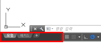 모형 탭 및 여러 명명된 배치 탭은 기본적으로 도면 영역의 왼쪽 아래 구석에 표시됩니다.