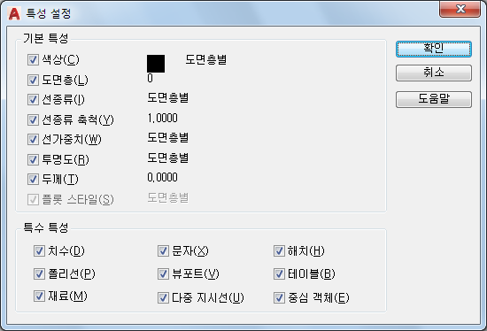 대상 객체의 도면층을 원본 객체의 도면층으로 변경합니다. 모든 객체에 사용 가능합니다.