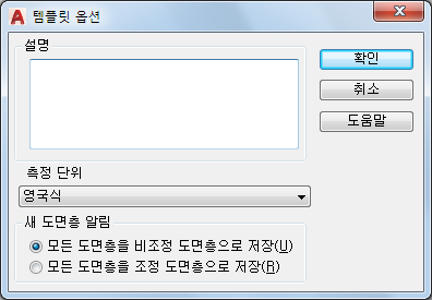 도면 템플릿에 대한 설명을 지정합니다. 이 설명은 시작 대화상자나 새 도면 작성 대화상자에서 템플릿을 선택하면 표시됩니다.