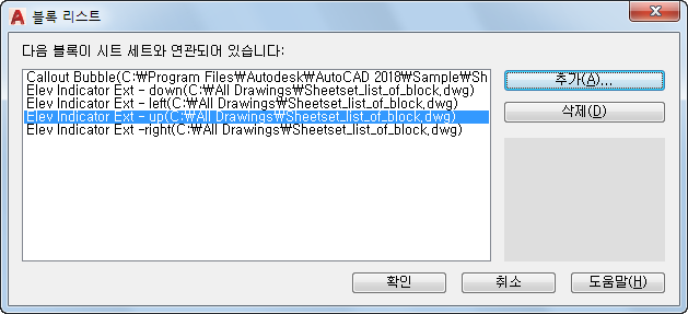 현재 시트 세트에서 사용할 콜아웃 블록을 나열하거나 추가 또는 삭제합니다.