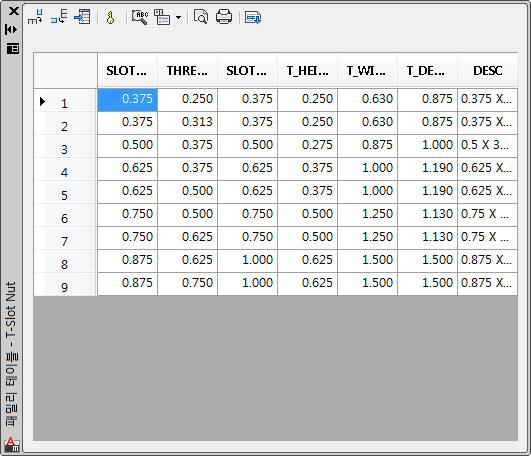 패밀리 테이블을 통해 유효한 크기 정의 정보(AutoCAD Mechanical)