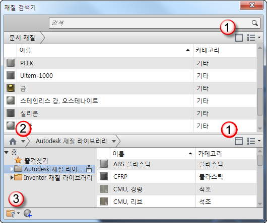 잠금 및 갱신 아이콘 수정 중인 경우 재질 검색기 및 자산 브라우저 둘 다의 공유 라이브러리에 잠금 아이콘이 표시됩니다.문서 재질 및/또는 모양이 오래되었음을 알리기 위해 재질 검색기와 자산 검색기의 공유 라이브러리에서 갱신 아이콘이 표시됩니다. 갱신 아이콘을 클릭하면 업데이트할 수 있습니다.