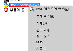 동일한 DWG 파일을 부품 파일에 쉽게 다시 삽입할 수 있습니다. 이를 위해 검색기에서 DWG 노드를 마우스 오른쪽 버튼으로 클릭하고 새 상황에 맞는 메뉴 옵션인 복제 추가를 선택합니다.