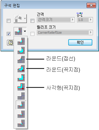자세한 내용은 구석 이음매 편집 대화상자 참조를 참고하십시오.
