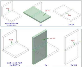 재접힘 후 모형 전개 시 작성되는 참조는 남아 있습니다. 이 동작은 반지름 절곡부가 0이 아닌 경우에도 동일합니다.