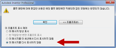 플랫 패턴을 편집한 경우 경고 메시지를 영구적으로 닫을 수 있습니다.