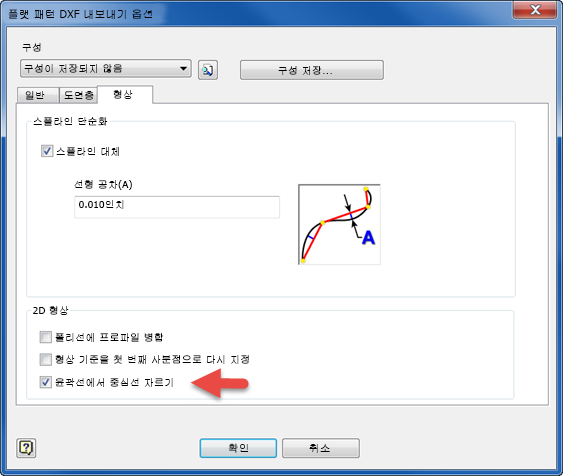 절곡부 중심선이 절곡부의 구멍을 교차하는 경우 DWG 또는 DXF 플랫 패턴 파일을 내보내는 데 일부 공장 도구를 사용할 수 없었습니다. 플랫 패턴 DXF 또는 DWG 내보내기 옵션 대화상자의 형상 탭에 새 옵션이 추가되었습니다. 절곡부 중심선을 절단 모서리까지 자르려면 형상 탭의 새 옵션인 윤곽선에서 중심선 자르기를 선택합니다.