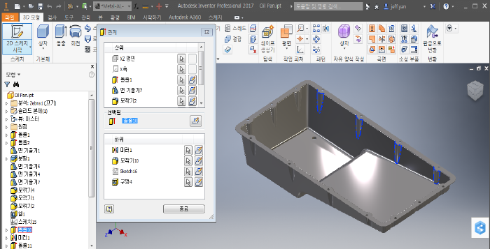 Inventor 2017의 판금 환경에 새 워크플로우 옵션 및 컨트롤이 추가되었습니다.