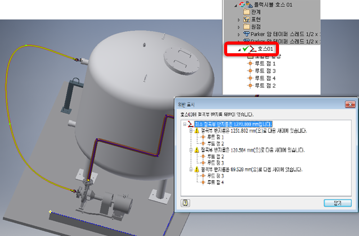 이제 메쉬 데이터를 Inventor로 가져온 다음 다른 3D CAD 데이터와 비슷한 방식으로 관리할 수 있습니다. 이제 간섭 탐지 기능으로 메쉬 부품과 및 기타 형상 간의 간섭을 식별할 수 있습니다.