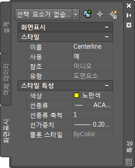 | 도면요소 | 이 스타일을 사용하여 도면 객체의 색상, 선종류, 선종류 축척, 선가중치 및 플롯 스타일을 지정합니다. |