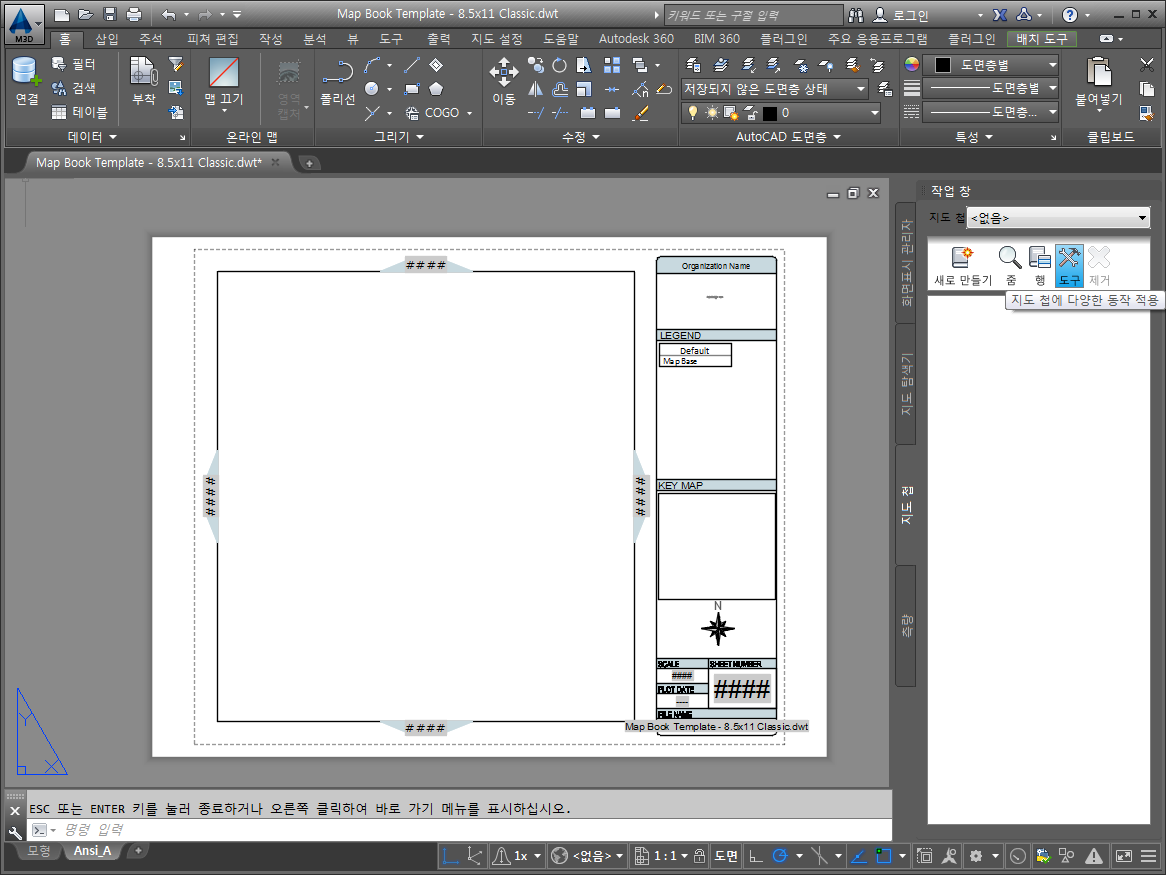 지도 첩 템플릿을 정의하고 지도를 저장하면 지도 첩을 플로터 또는 DWF 파일에 게시할 수 있습니다.