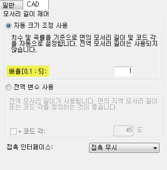 자동 크기 조정은 이미 정의된 지역 모서리 길이 및 코드 각을 덮어쓰지 않습니다.