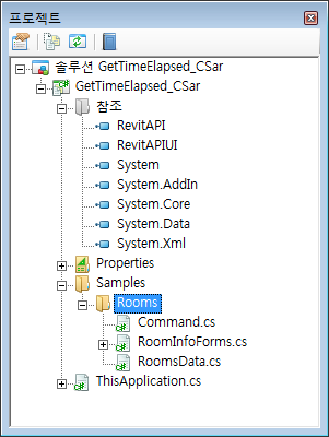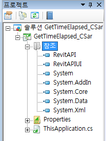 이 예제에서 GetTimeElapsed_CSharp를 위해 새로 고친 IDE 프로젝트 탐색기에는 다음이 포함되어 있습니다.